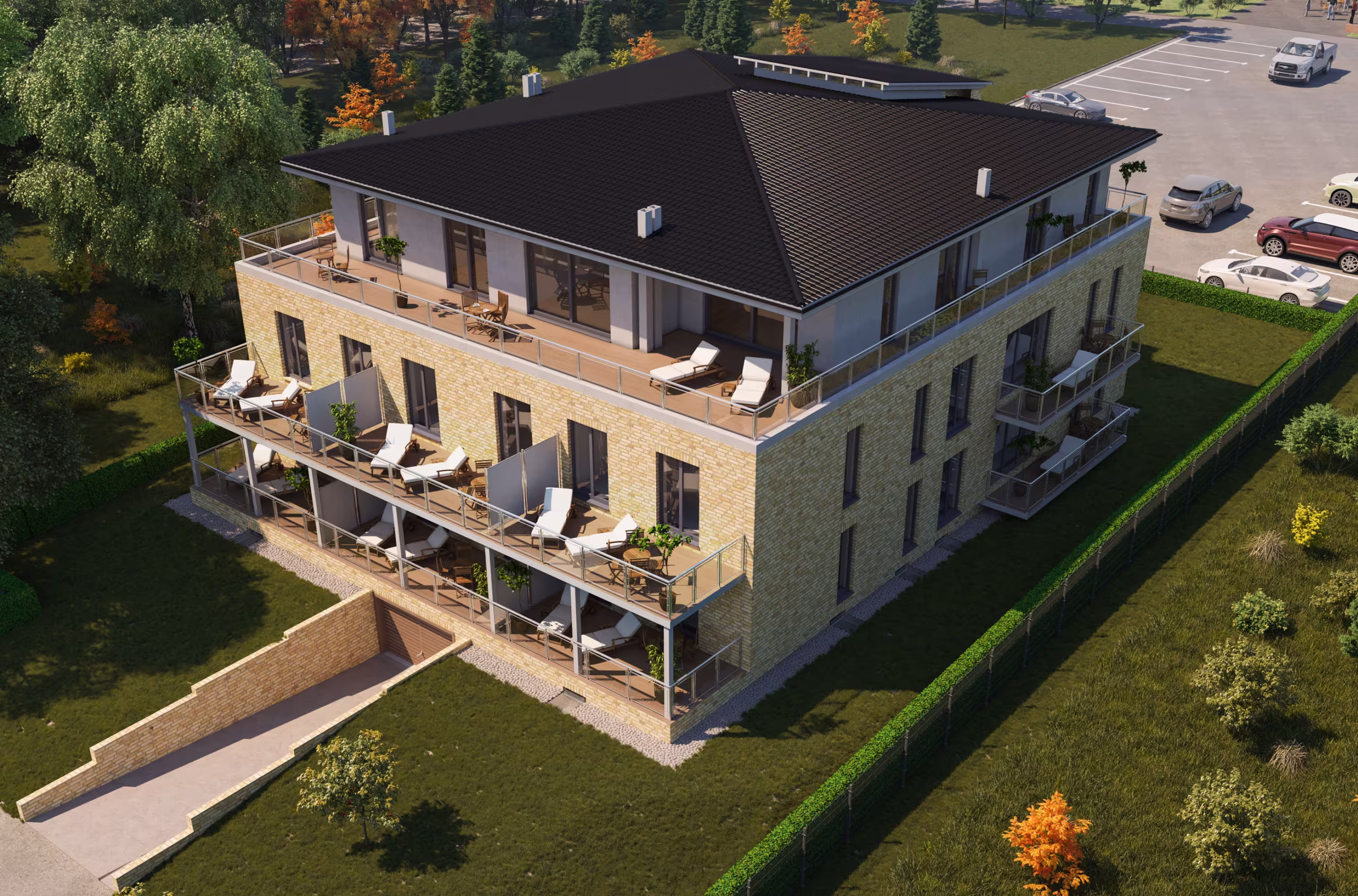 In einer Vielzahl von Projekten – angefangen bei einzelnen Häusern hin zu großen Ferienparks mit mehreren Hundert Wohneinheiten – haben wir Immobilien-Entwickler mit unserer 3D-Renderings unterstützt und konnten auch wirksam beim Marketing mit Flyern, Exposés, Social-Media-Kampagnen und Projekt-Websites unsere Kompetenzen einbringen .